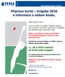 - Brigáda na letní sezónu (04-10/2025) na pozici správce našeho tenisového areálu 6. 5. 2025